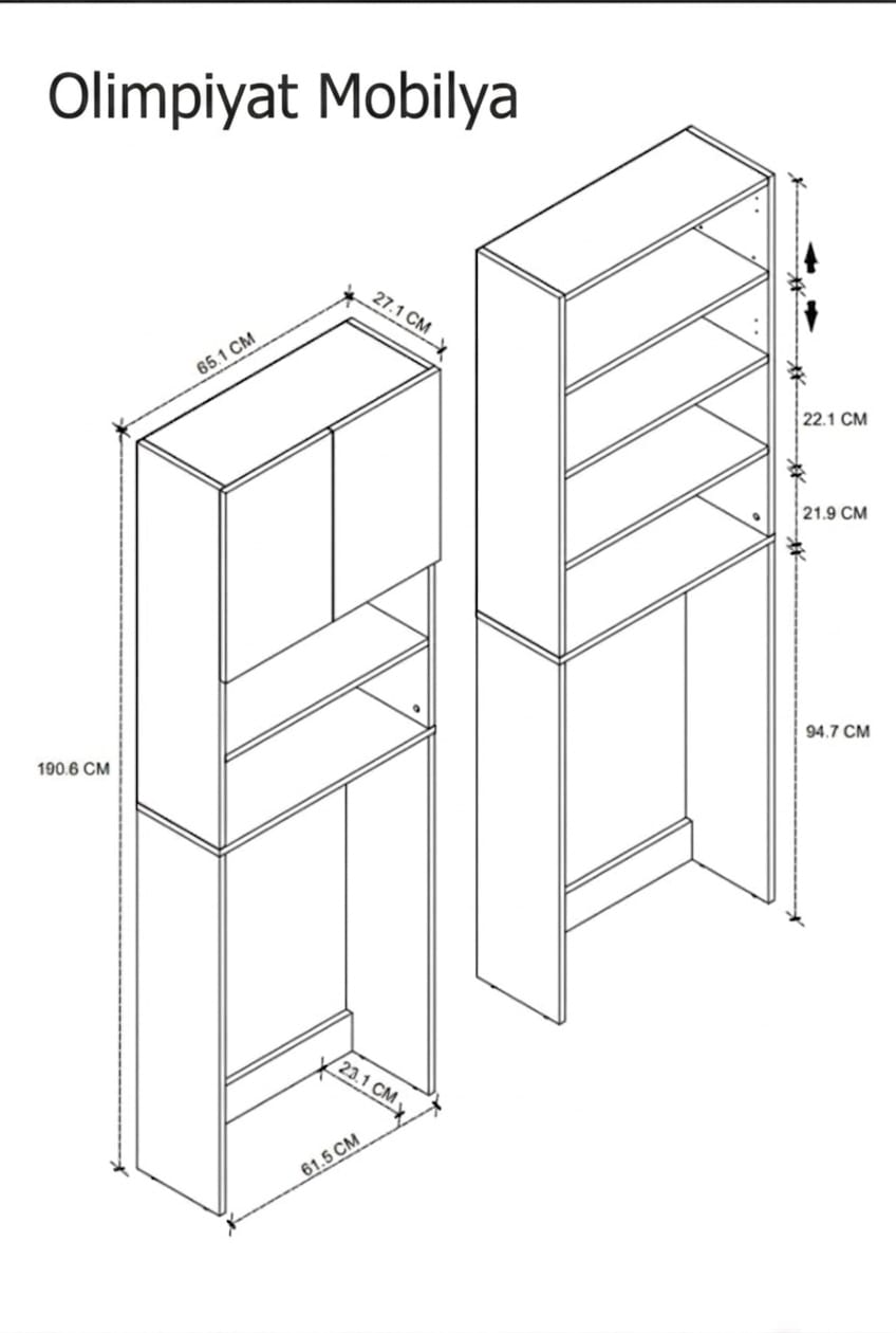 ÜRÜN DEMONTE GELMEKTEDİR.KOLAY KURULUM ŞEMASI İÇİNDEDİR. %100 MDFLAM EN:65CM BOY:190CM DERİNLİK:27CM RENK PARLAK BEYAZ MDFLAM