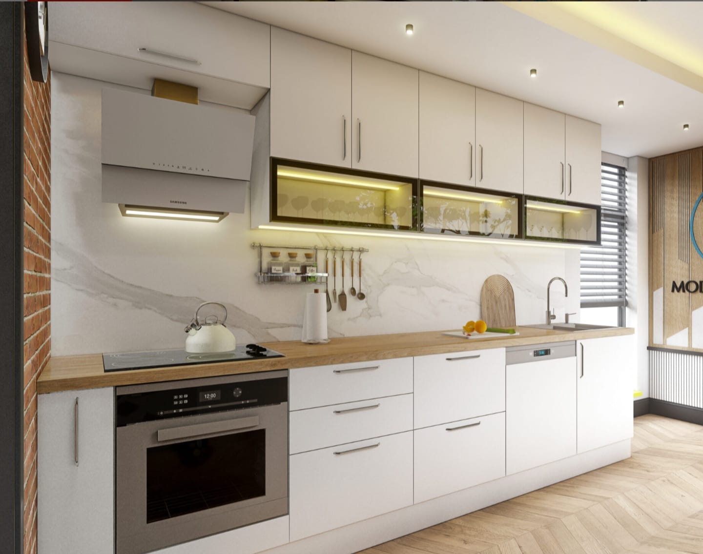 320CM ECOLAM BEYAZ MUTFAK DOLABI -BEYAZ MDFLAM PARLAK